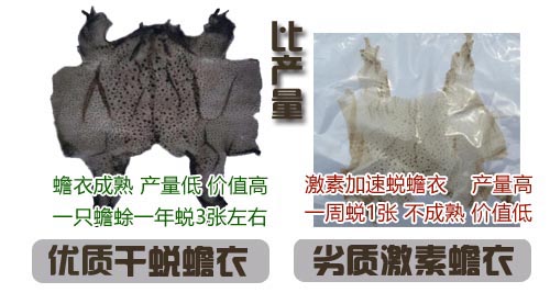 來(lái)買(mǎi)蟾衣的家人都是用來(lái)救命的,關(guān)心的首先是它的質(zhì)量,作用,而不是哪個(gè)便宜要哪個(gè),成熟的自然干蛻蟾衣,黑點(diǎn)多,效果好;還有激素水蛻蟾衣,白色或者接近白色,基本沒(méi)有作用。